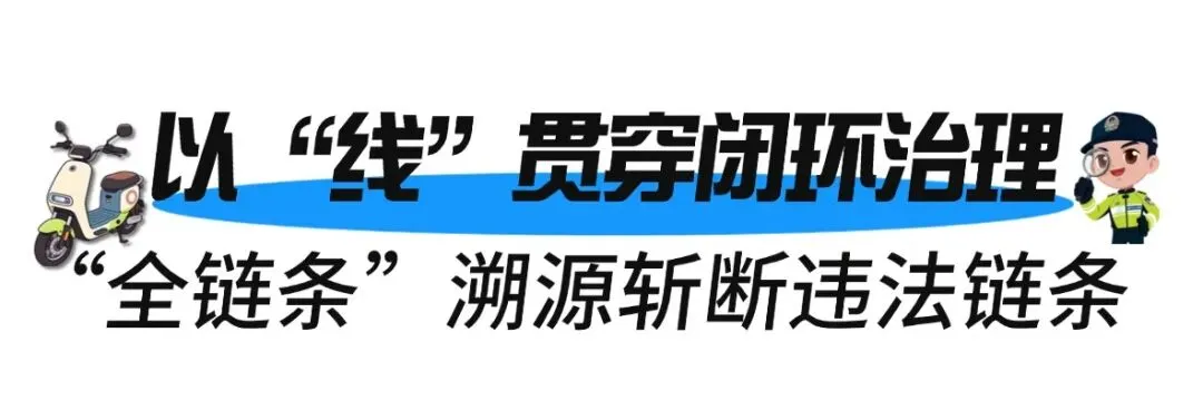 聚焦电动自行车非法改装“全链条”打击,形成“线索+溯源+打击”闭环执法。坚持“一案双查”“双向核查”工作机制,一方面对排查发现的违规改装门店开展溯源倒查,深挖背后违法链条;另一方面将电动车非法改装门店纳入事故定责,对涉及改装车辆的交通事故,一律倒查门店改装责任,同步追究经营主体法律责任,实现“事故追责+违法溯源”双向管控。