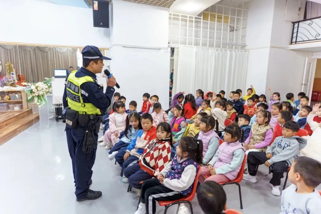 广岭教学点邀请交警进校园,通过生动讲解与实景演示,向孩子们普及交通规则与出行安全知识,提升文明出行意识,以趣味互动形式引导孩子们掌握自我保护技巧,切实将安全意识融入一日生活,为幼儿健康成长保驾护航。