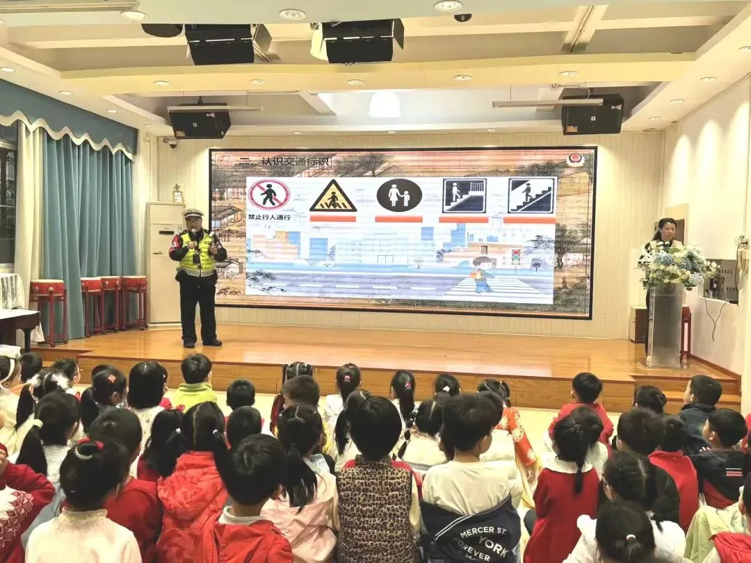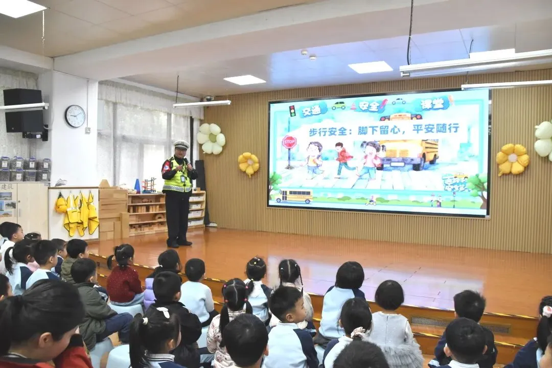 民警叔叔走进罗外附属幼儿园开展交通安全宣讲,首先向孩子们介绍腰间的对讲机、警哨等装备,告诉大家这些都是守护安全的 “小法宝”。又用生动好玩的方式,给孩子们科普交通安全知识:骑行时正确佩戴安全头盔,不在停车场玩耍,远离车辆盲区不突然横穿马路等,引导孩子们牢记交通规则,平安出行。