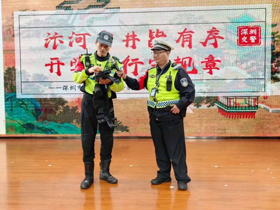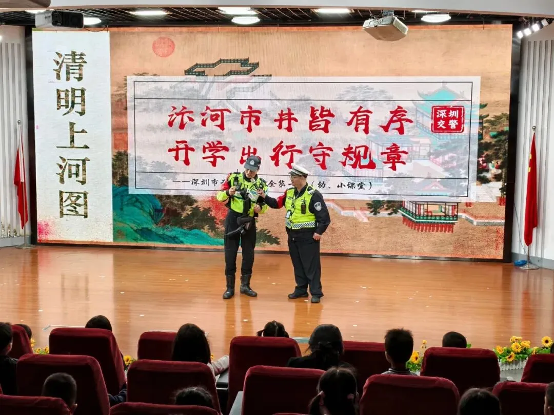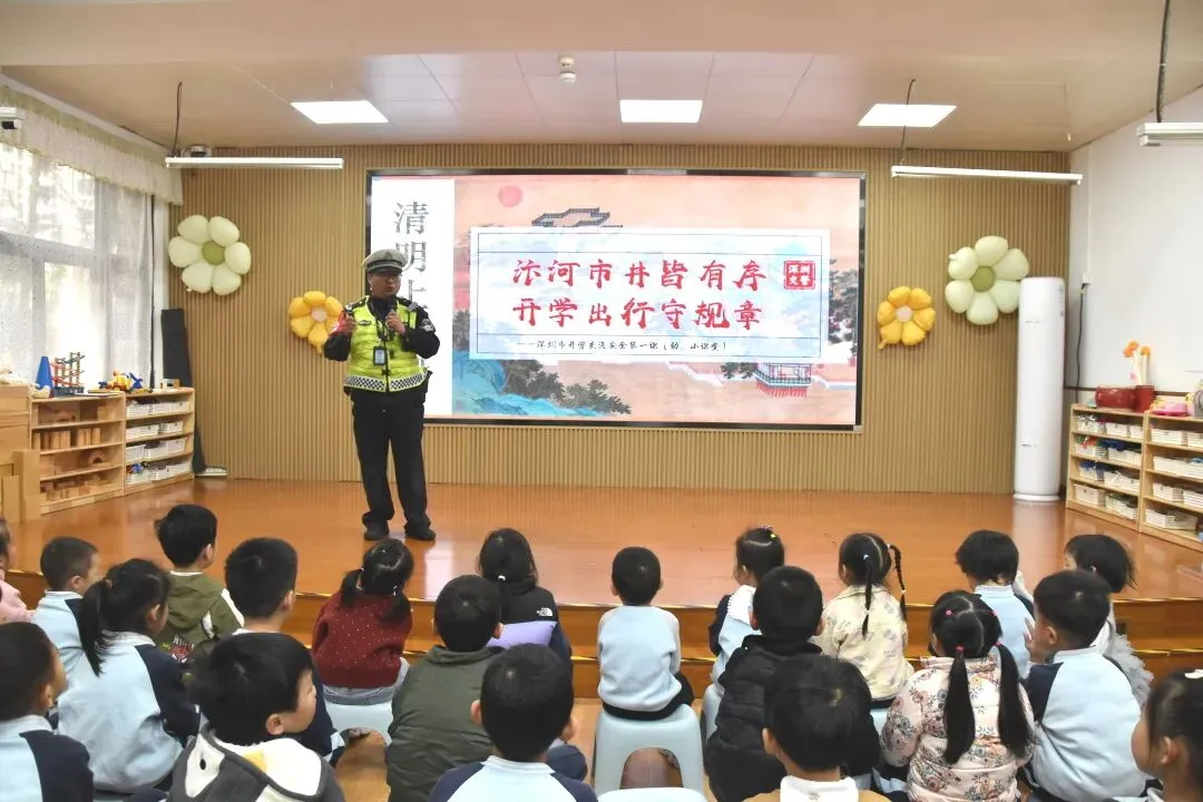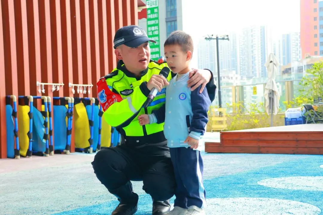 罗湖交警大队黄贝中队马强警官走进金城幼儿园,给孩子们带来一场超接地气的交通安全宣讲。马警官用生动有趣的方式,带着孩子们认识交通安全标识,还贴心划重点:平衡车、滑板等只能当玩具,不能作为代步工具上路行驶;乘坐电动车要戴好头盔,把安全牢牢 “戴” 在身上~