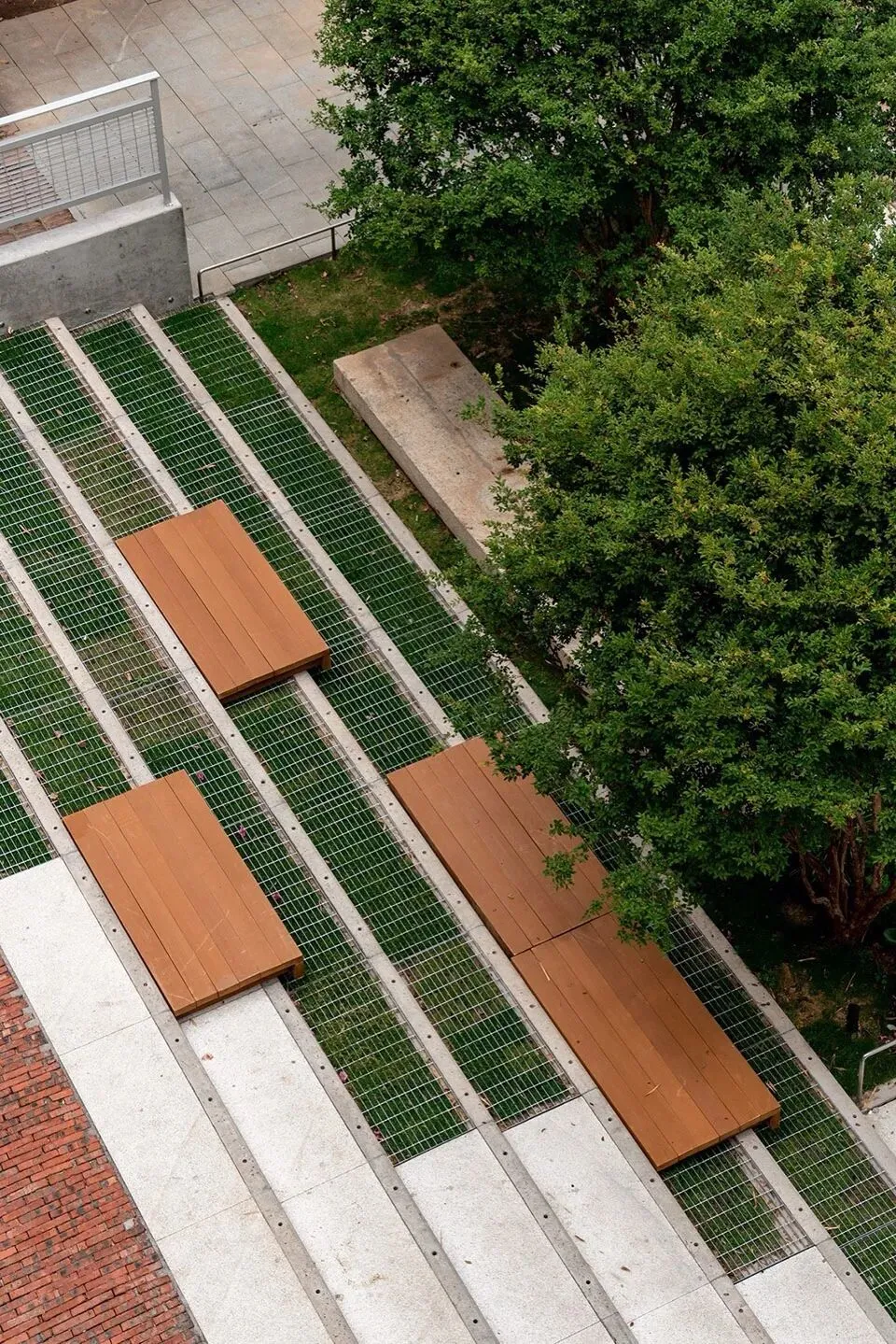 ▲树荫下的座椅与台阶融为一体© 潘绍清