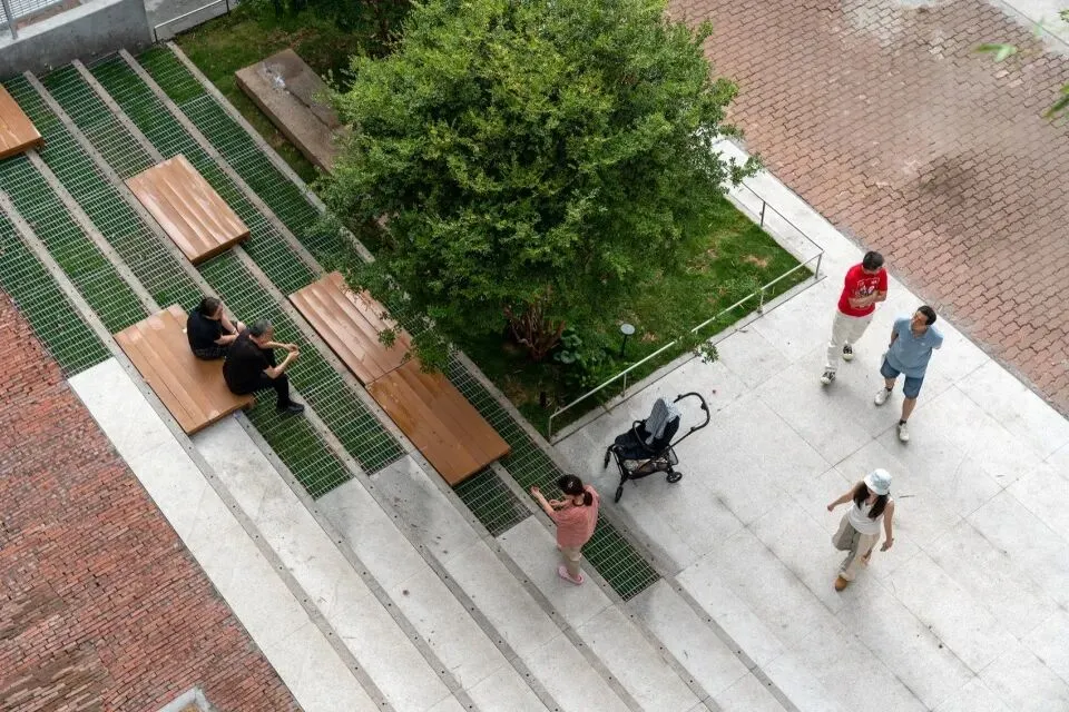 以原生树木为坐标,退让空间,打开边界。树下作为户外客厅,设可坐护栏与城市家具,将个体的纳凉行为引向社区的公共生活——这里既是创意工作者的露天办公室,也是邻里偶遇交谈的据点。人们不再只是匆匆路过,而是自然而然地停留、相遇、交谈。