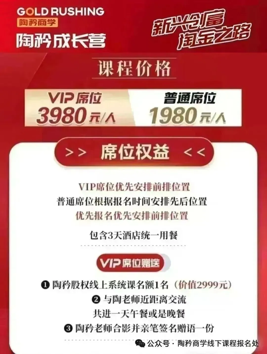 - VIP 席位:3980 元 / 人(含普通权益 + 导师 VIP 晚宴 + 股权线上课 + 专属合影,深度链接导师)。