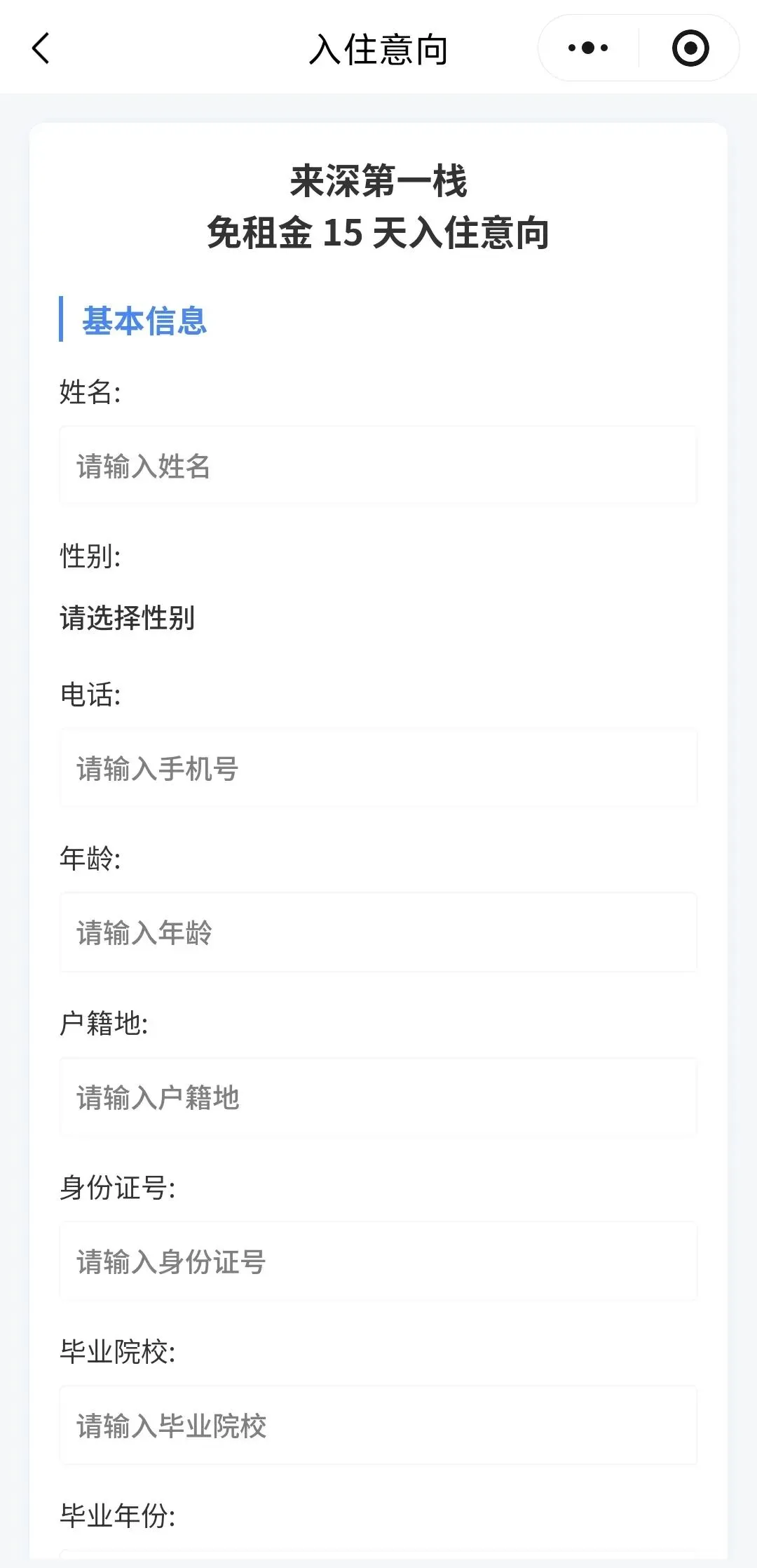 登录"来深第一栈"小程序并填写“入住意向登记”即可参与免费住15天活动,填写“活动长住”信息可使用长租300元租金代金券。