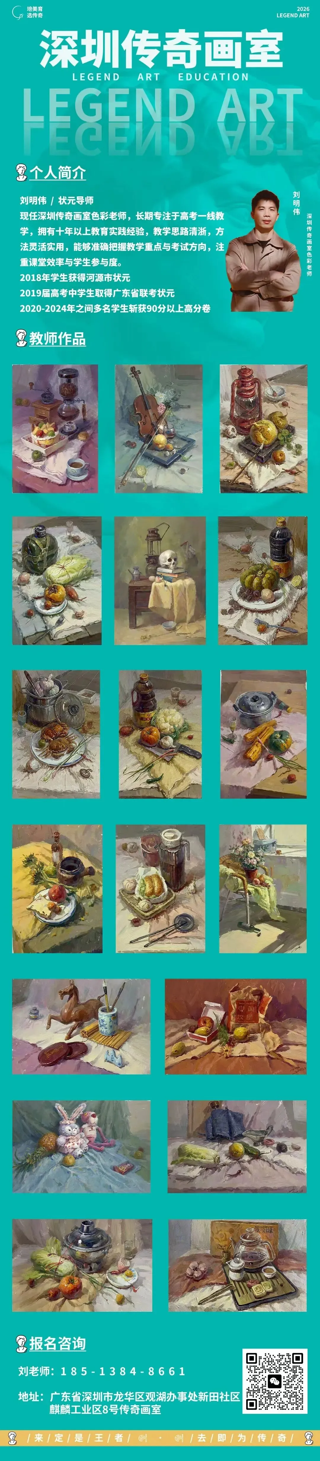 >状元导师刘明伟,深圳传奇画室色彩老师,欢迎加入传奇师资战队!联考硬 校考棒