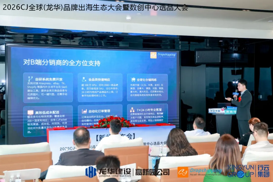 随着CJ促佳集团深圳负责人李林飞的发言,大会愿景进一步明确:将以龙华高新园全球选品中心为核心,持续深耕服务,推动跨境电商行业合规化、阳光化运营。此次大会不仅是一次商机对接,更是龙华区强化区域产业话语权、建设“全球货,卖全球”新格局的关键一步,将为区域经济高质量发展注入强劲动力。