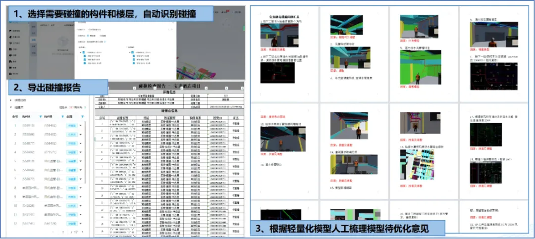 1、通过广联达数维协同平台开展机电管线综合碰撞检测,累计识别管线碰撞问题323项,解决管线主要碰撞问题214项。设计碰撞解决重大不易察觉问题18条。