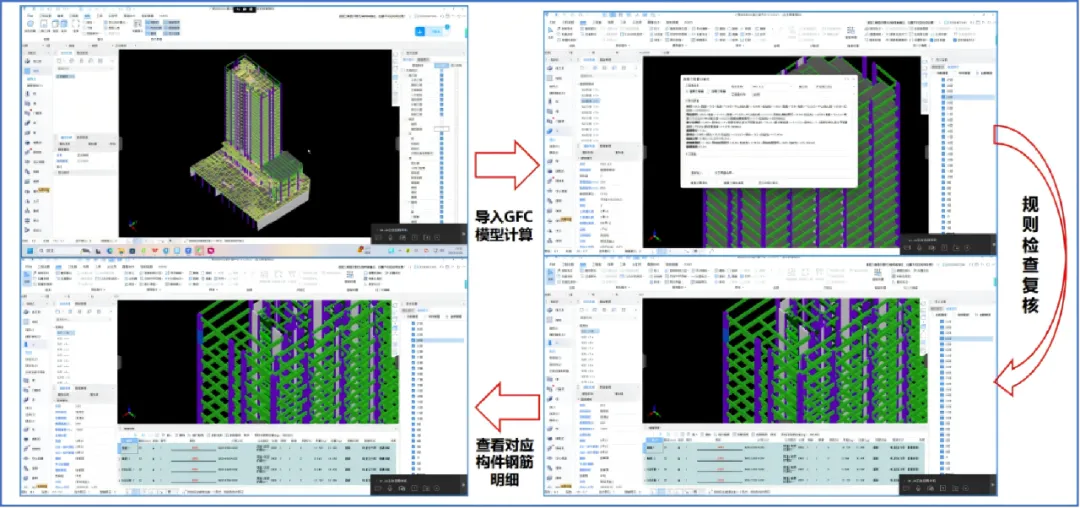 本项目采用的广联达设计协同平台可对模型进行AI智能审查。模型创建后,系统可自动定位不符合规范要求的构件,快速生成可视化问题清单,显著提升设计优化效率。经实践验证,该平台智能审查功能累计识别模型问题33项,其中成功解决设计类问题18项、模型扣减问题15项,实现设计效率与模型精度的双效提升。