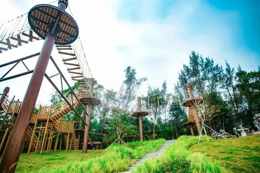 从吊桥、攀爬网、平衡木、无动力设施到戏水设备,