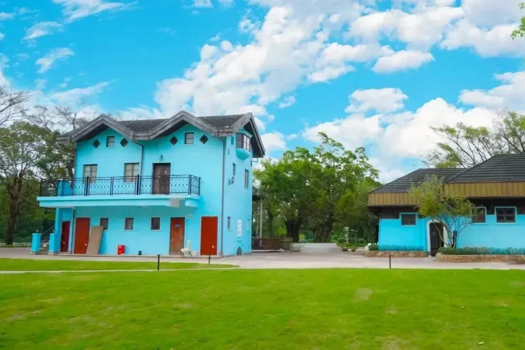 森林绿意环绕又充满童话感的五彩城堡,