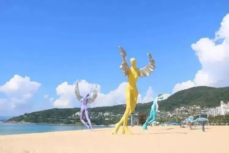 园内金色的沙滩、蔚蓝的海水、