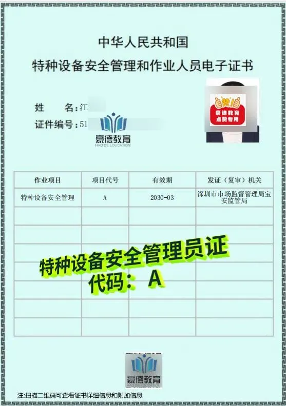 在深圳考取电梯安全管理员证(现统称为特种设备安全管理员证,代码为A)