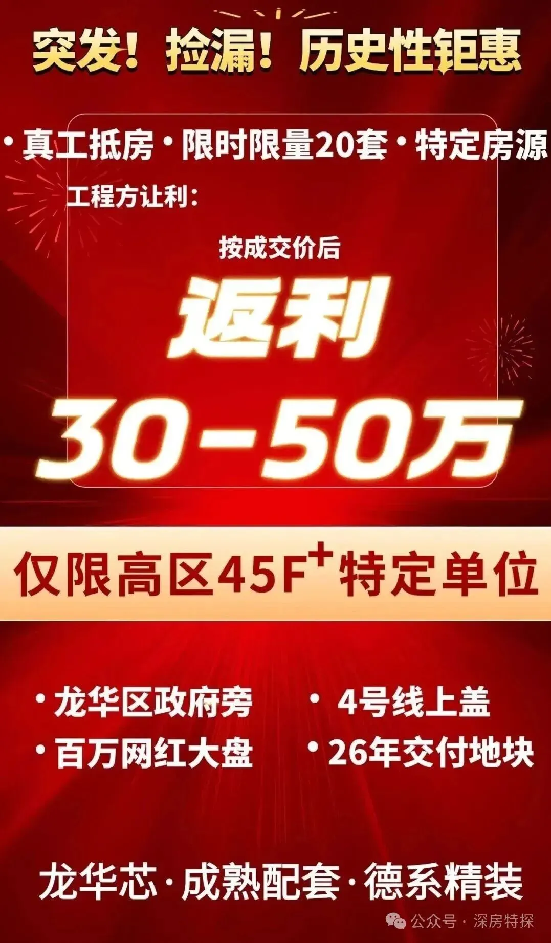 - 125平大四房原折后570万,后返50万 现520万可买大四房。