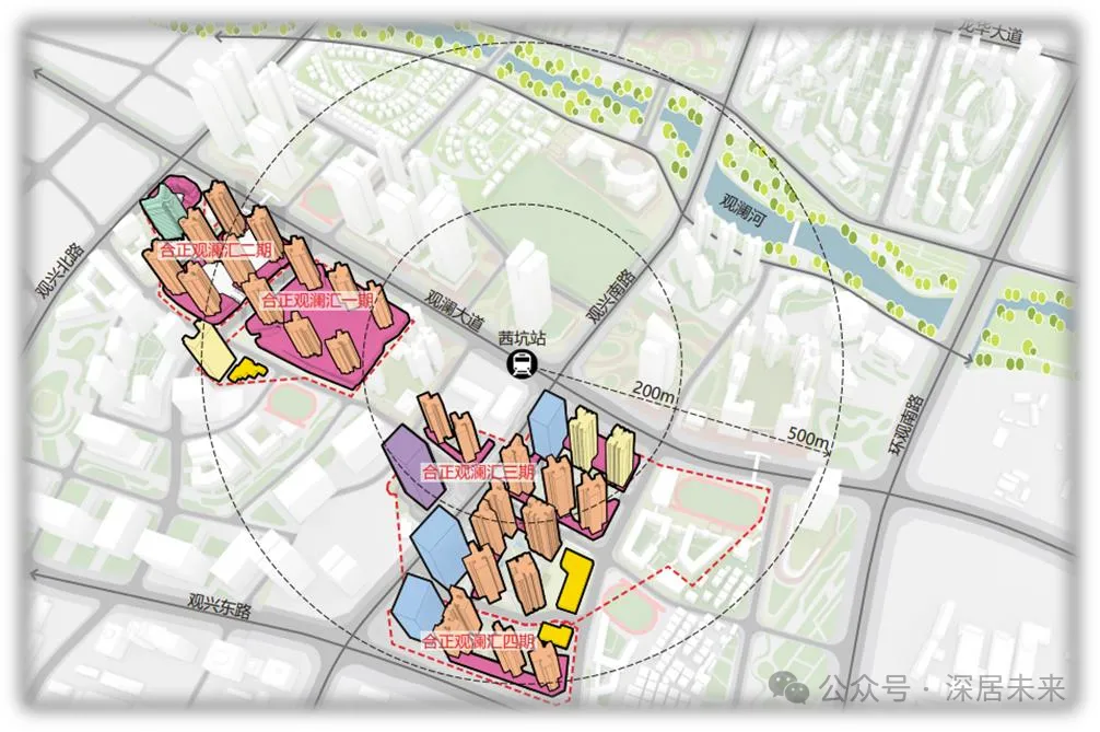 合正观澜汇项目坐落于龙华区福城街道,地处观澜大道与观兴南路黄金交汇处,紧邻地铁茜坑站D出口,交通便捷。项目规划宏大,分三期逐步推进,合正观澜汇作为综合体大盘,观澜汇一期于2016年初首推入市;2019年底一期天虹购物中心营业。至此,规模超130万㎡的观澜汇进入整体兑现期