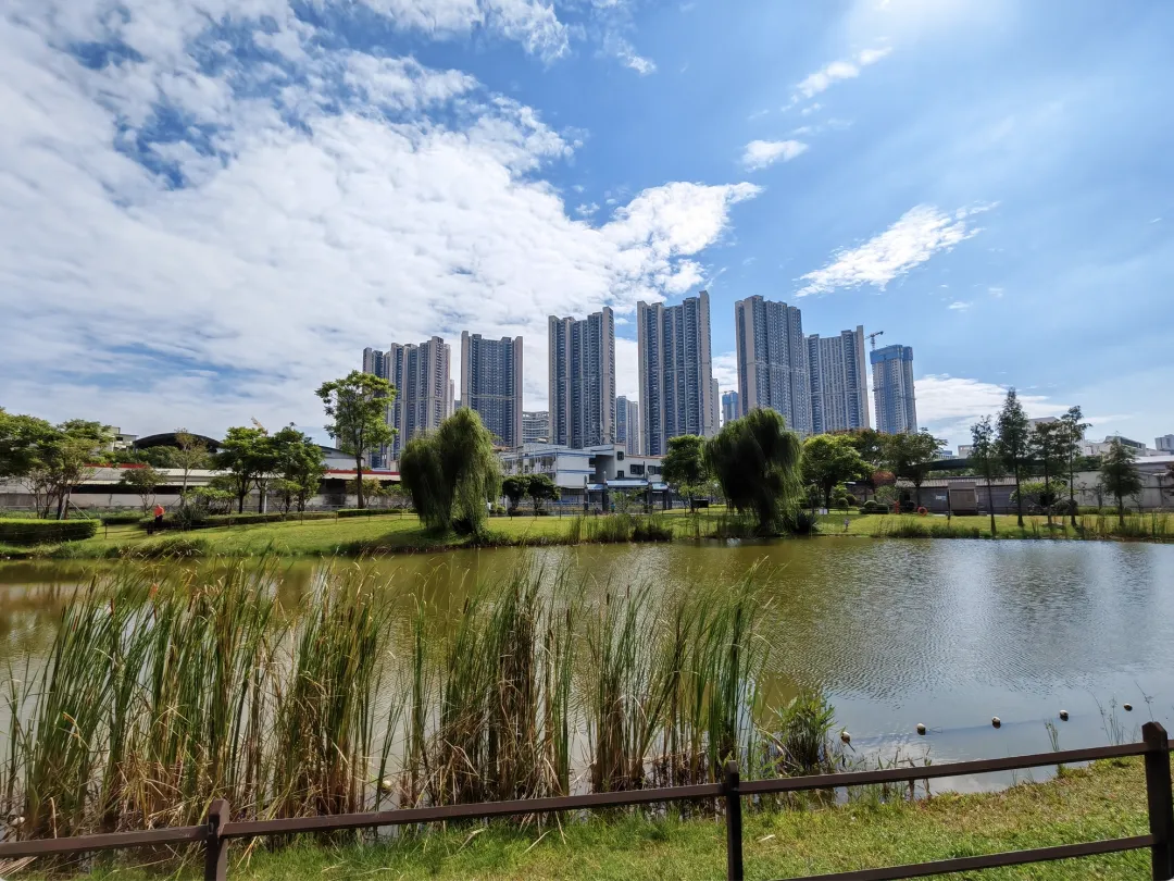 大树附近张屋议事厅。议事厅后面,地势高起十米,是张屋新村,西端融域名城。村楼高十几层,总量超乎想象,有十八巷,一直到张屋北路、塘家大道。张屋西面亦新城。村小水西流入鹅颈水。