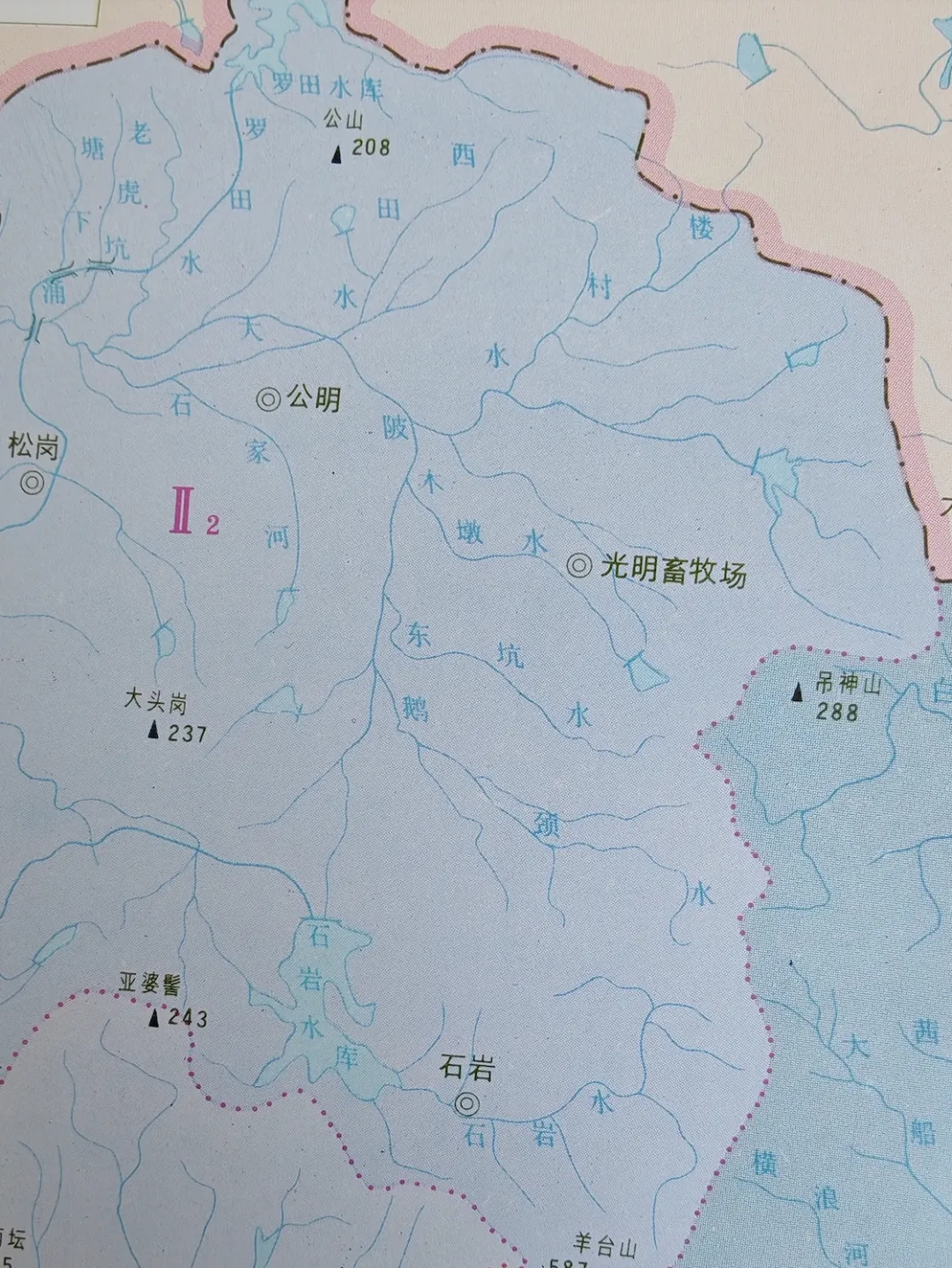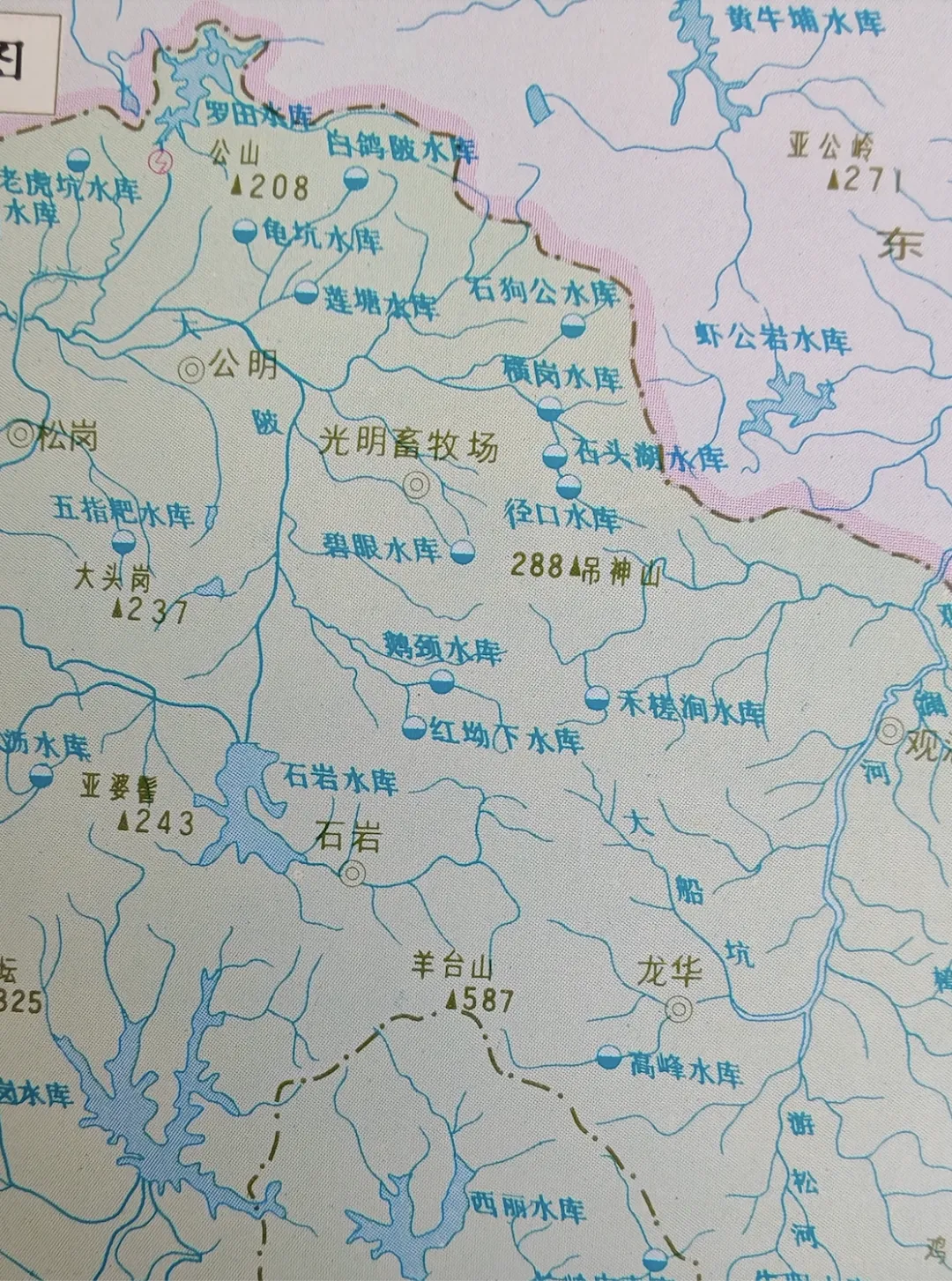 旧图塘家还有一个小聚落在东南面鹅颈水旁。即是中医院后面。塘家是东宝地洼最东南。张屋塘家的四围都是新城。这两个村是光明城中村。张屋西面有个大洼,那是鹅颈水岸,上方岗。同业路穿过那个洼。洼之西,隔河鸭仔塘。光明和石岩的地理阻隔是剧烈的,西面石岩水库,东面鹅颈水库,不是大山就是峡谷。古驿道周家村经栗木岗去白沙,差不多正是洲石玉支路!洲石玉支路可考也。