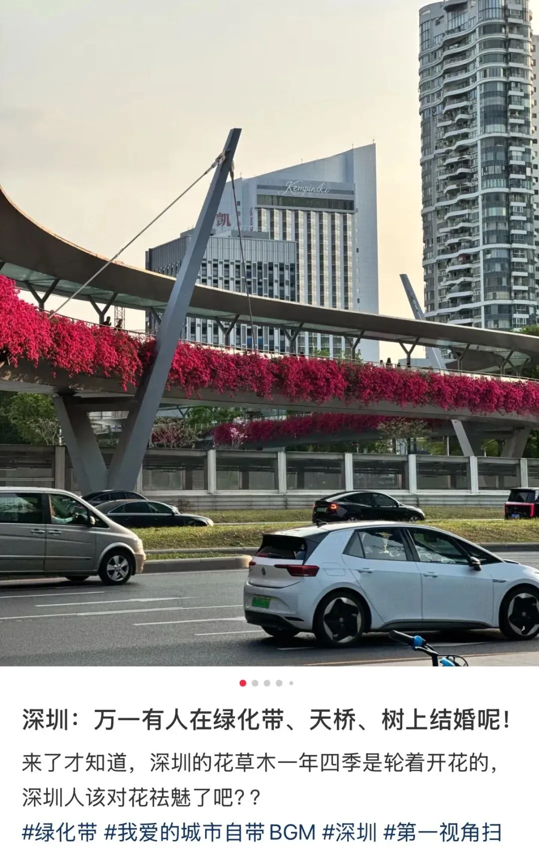 其次是养育技术,立交桥上开爆的簕杜鹃离不开自动微喷灌和滴灌系统,还有管理部门根据长期数据摸索的控花技术,精准调控花期,从而确保深圳簕杜鹃处处繁花似锦,达到“四季常绿、三季有花”的景观效果。
