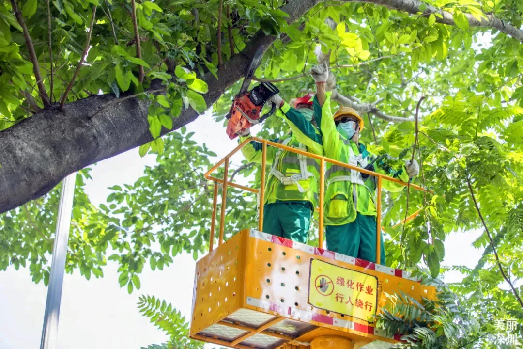 △图:城管部门修剪树枝作业场景(图源:美丽深圳)