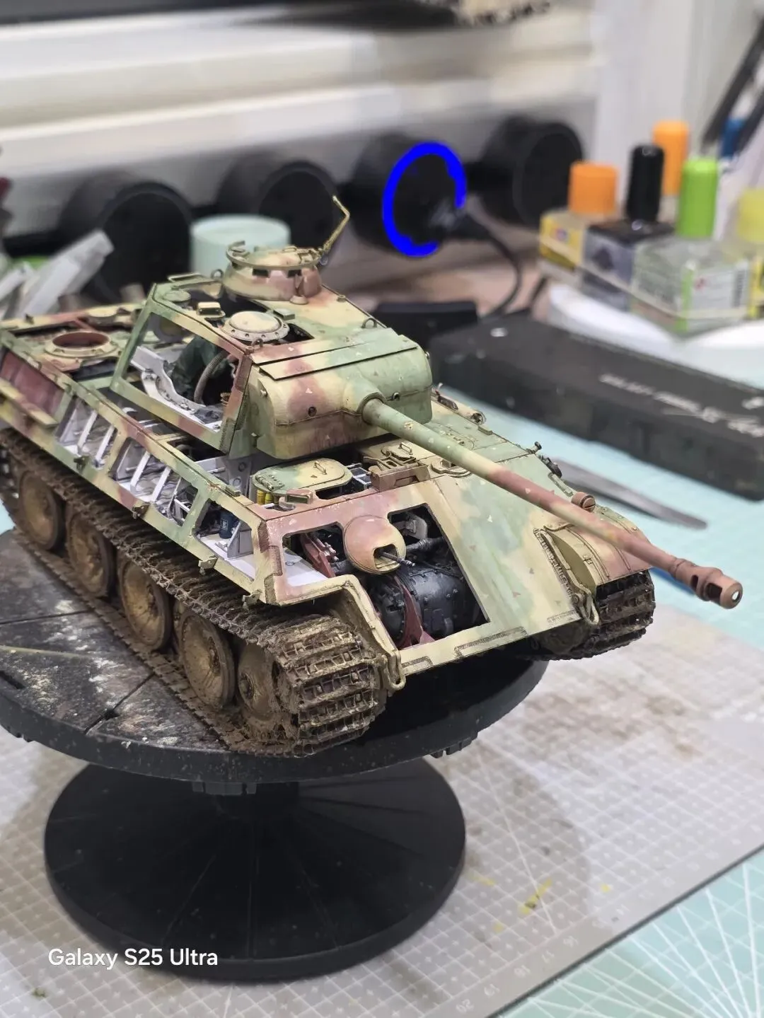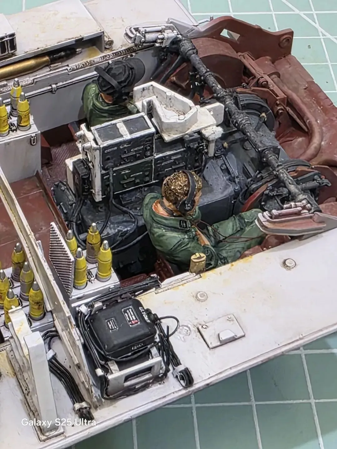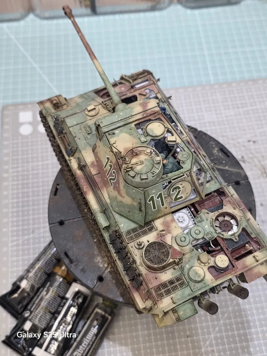 今天给大家带来的是深圳大叔的《阿登豹G》,套件为三花的全内构套件,作者对豹G的右边部分的车体进行了大胆的镂空,直观的展示了豹G精密的内部构造,并且在狭小的战斗舱内加入了完整的车组乘员;外观涂装采用了德国三色迷彩,旧化效果也是非常具有战斗烟火气,使得这辆豹G左看右看风格迥异且震撼,各位请欣赏。