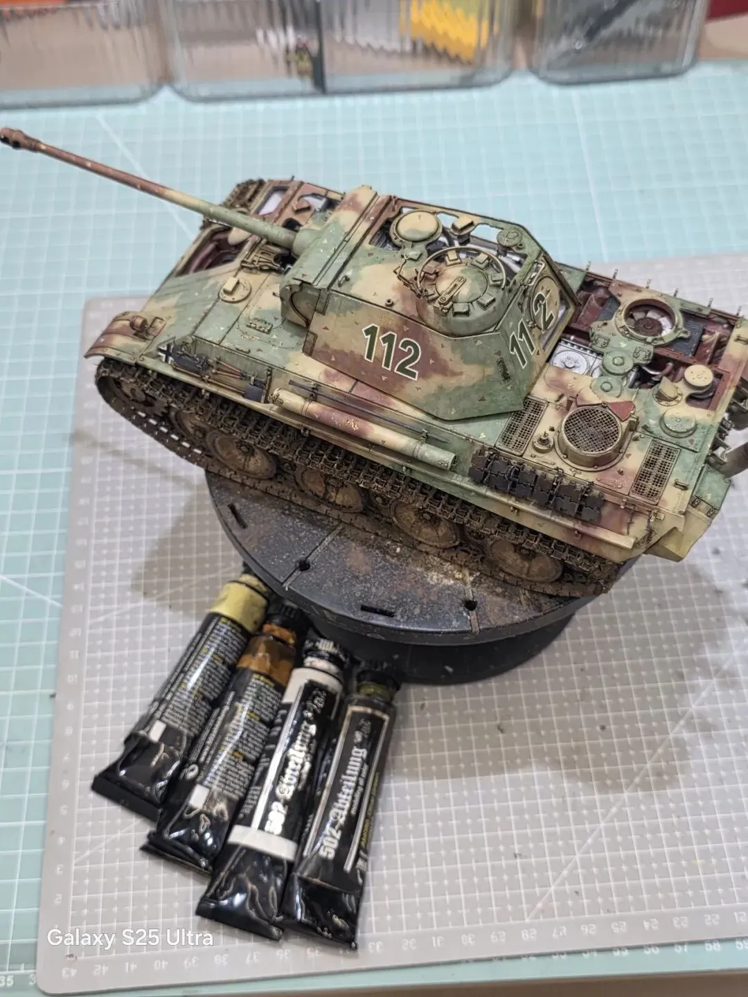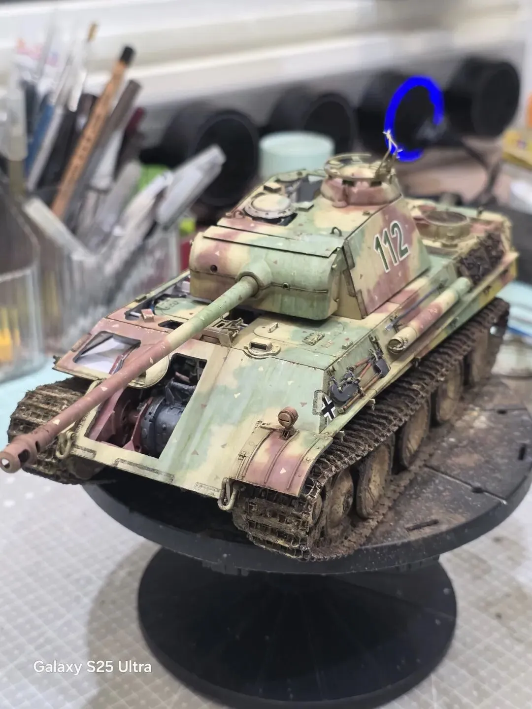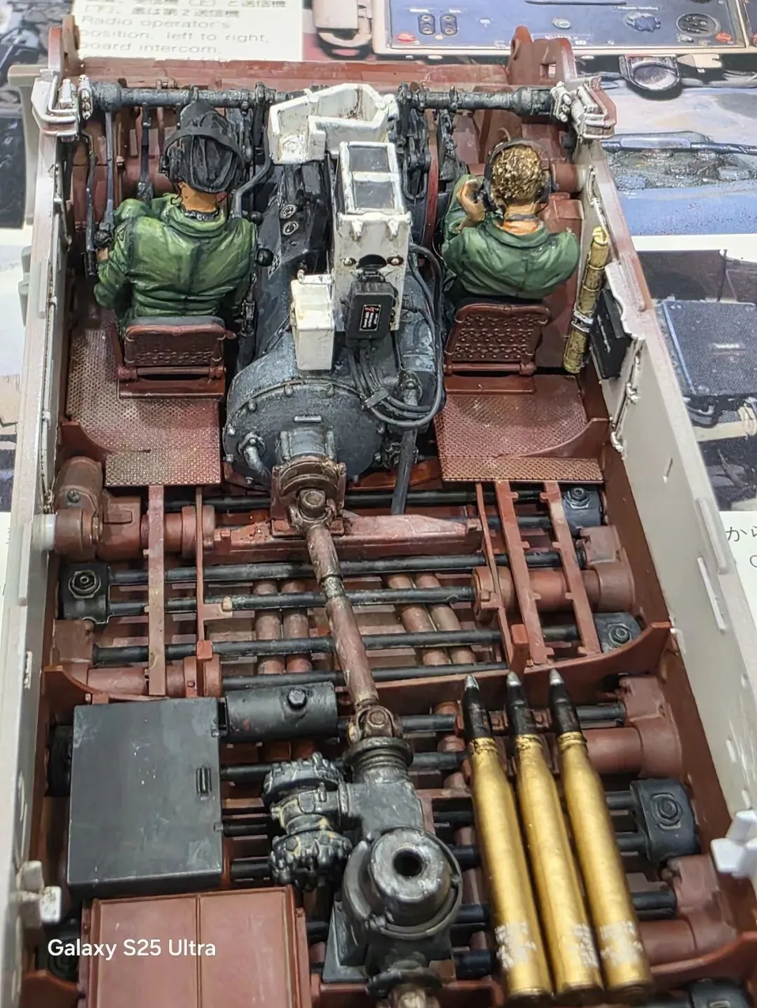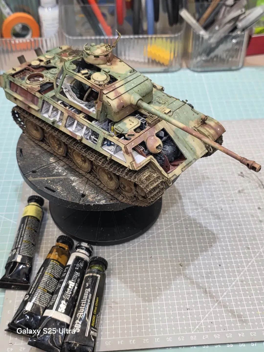 今天给大家带来的是深圳大叔的《阿登豹G》,套件为三花的全内构套件,作者对豹G的右边部分的车体进行了大胆的镂空,直观的展示了豹G精密的内部构造,并且在狭小的战斗舱内加入了完整的车组乘员;外观涂装采用了德国三色迷彩,旧化效果也是非常具有战斗烟火气,使得这辆豹G左看右看风格迥异且震撼,各位请欣赏。