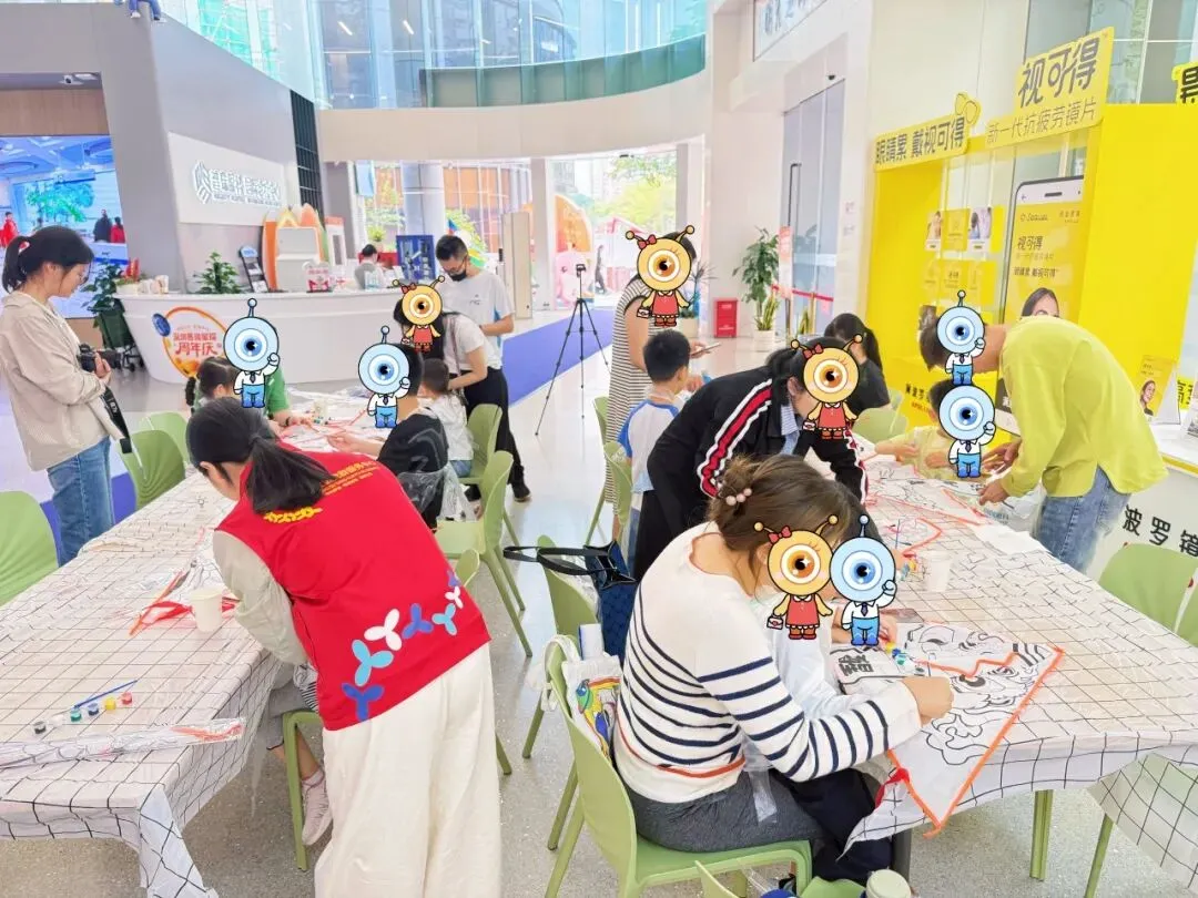 随后,现场备有空白风筝、颜料和画笔,家长带着孩子围坐在一起,涂色创作、交流护眼心得,在轻松愉悦的氛围中感受传统国潮文化的魅力。