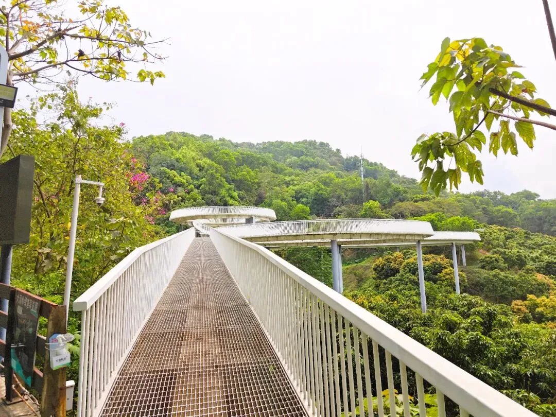 大顶岭绿道全长约 6.4 公里,串联起虹桥、浮桥、探桥、悬桥四座特色景观桥,一边是郁郁葱葱的山林氧吧,一边是未来感十足的建筑设计,既能沉浸式吸氧,又能拍出刷爆朋友圈的大片,是深圳少有的「零难度 + 高颜值」亲子徒步路线。