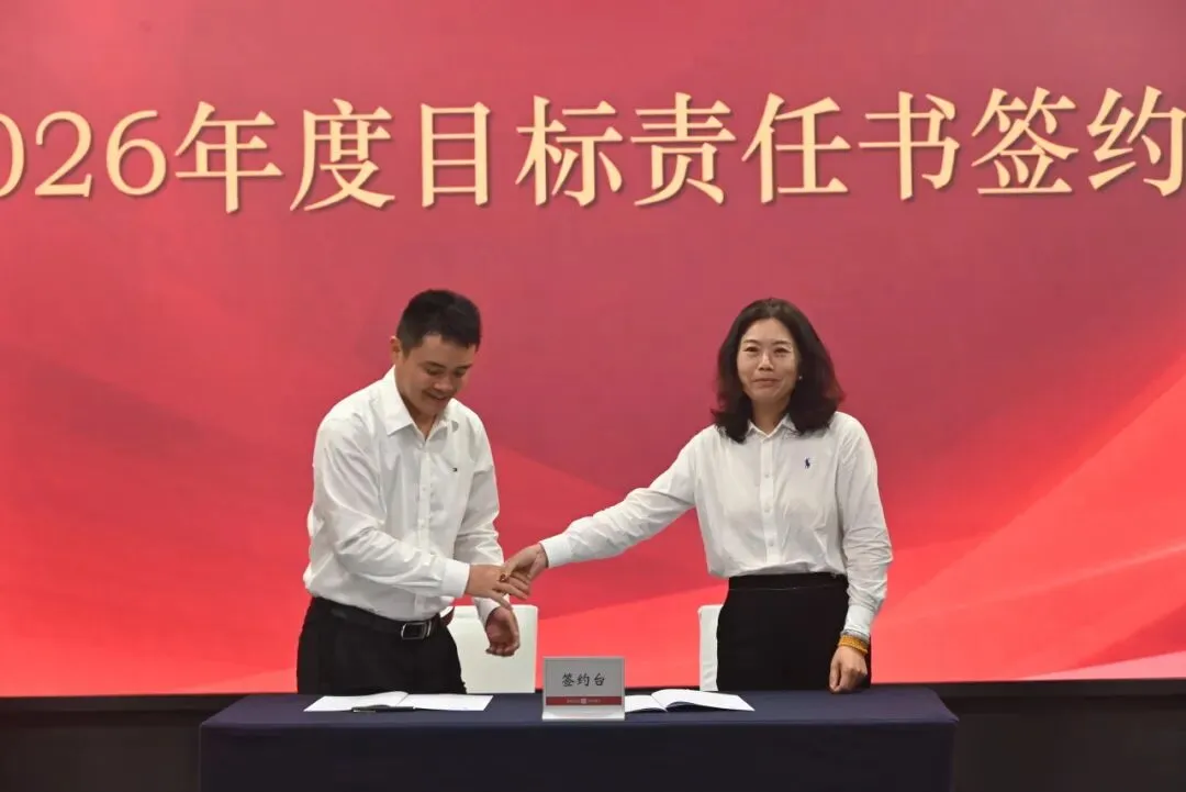 集团总部中心、事业部、直属项目代表与集团签订2026年度目标责任书,明确攻坚目标,落实攻坚责任,开启奋进新征程。