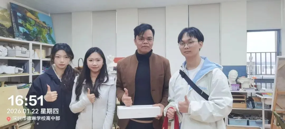 华珠学子王米可、袁子清、麦结华三人怀着期待与责任重返深圳德琳学校,开展宣传与经验交流活动。他们选择在学生返校必经之路设立宣传点,展布一铺开便吸引众多同学驻足,艺术班学子更是对华珠学生设计作品表现出浓厚兴趣。面对大家关于特色专业、社团活动、课程细节的提问,他们耐心细致逐一解答,不到一小时,两百份宣传手册便领取一空,随后他们用照片展示校园日常、学习场景与社团活动,用真实画面传递华珠魅力。下午进班宣讲阶段,他们分工协作、各展所长:麦结华系统介绍专业设置与教学特色,重点讲解艺术、传媒类课程体系与 “理论 + 实践” 培养模式,分享传媒基地、实践项目与师资设备;王米可以 “一天的校园生活” 为主线,沉浸式展示早读到晚自习、食堂宿舍、校园活动等真实场景;袁子清聚焦备考与心态调适,针对艺术生分享备考规划、作品集准备与压力调节方法,总结热爱、时间管理与敢于展示三大成长心得。宣讲结束后,他们建立微信咨询群方便持续交流,并向协助老师赠送伴手礼致谢。此次回访,他们在分享中重温初心,在传递中收获成长,更让教育的薪火在青春接力中温暖延续。