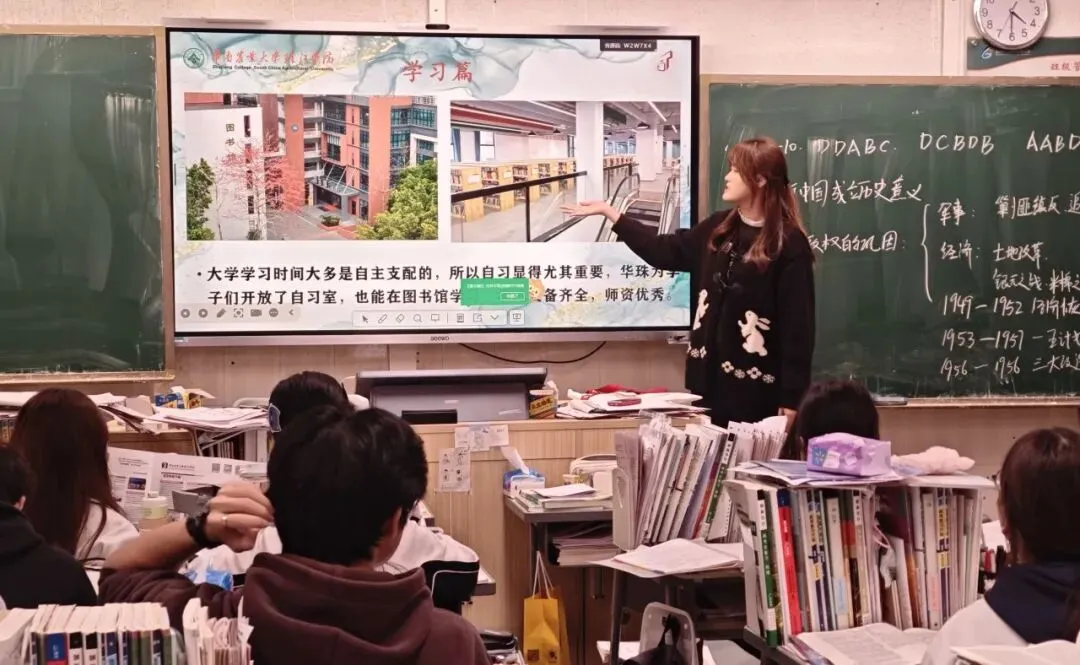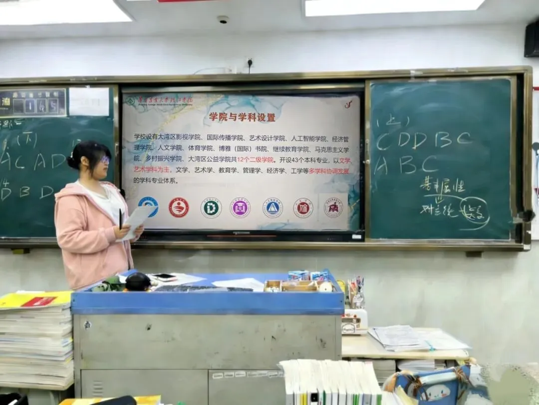 华珠学子陈育姿、陈飞扬、涂杰三人带着初心重返光明区高级中学,周密筹备、分工协作开展宣传活动:陈育姿负责摆摊宣传与咨询,陈飞扬负责进班宣讲,涂杰负责现场拍摄、设备调试与资料保障。活动当天,他们提前布置操场咨询摊位,整齐摆放宣传册、文创礼品与意向登记表,以醒目温馨的布局迎接学子咨询。摆摊环节,他们主动发放资料、亲切交流,结合自身经历解答专业、生活、升学等各类疑问,累计覆盖学子一千四百余名,让华珠形象在互动中鲜活可感。进班宣讲阶段,他们走进六个班级,惠及近三百名学子,涵盖普通班与艺术集训班,围绕投档分数线、办学层次、特色专业与艺考政策、校园环境、周边配套、学费开销六大核心问题精准解答。宣讲尾声设置有奖问答环节,赠送伴手礼调动氛围,并邀请学子加入线上答疑群,实现长效沟通。宣讲之余,他们探望高中恩师,汇报在华珠的成长收获,赠送伴手礼致谢栽培,收获老师的肯定与期许。此次母校行,他们圆满完成宣传任务,并为学子们提供实用升学指导,更在角色转变中体会责任与传承,用真诚与热忱为学弟学妹点亮逐梦微光。