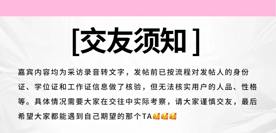 今天推荐的高质量男嘉宾来啦~事业型男,穿搭干净舒服,眉眼生得极正,眼型偏圆,不笑的时候斯文内敛,笑起来是脾气超好的温柔款!男生性格温柔心软、重情重义,待人真诚、说到做到、情绪稳定,执行力强,专一、心细;平时喜欢唱歌、手游、看电影、旅行、桌游、羽毛球、徒步。期待携手同频真心的你:对感情专一,性格温和不强势,不内耗不冷战,在深圳长期发展,互相尊重和包容。