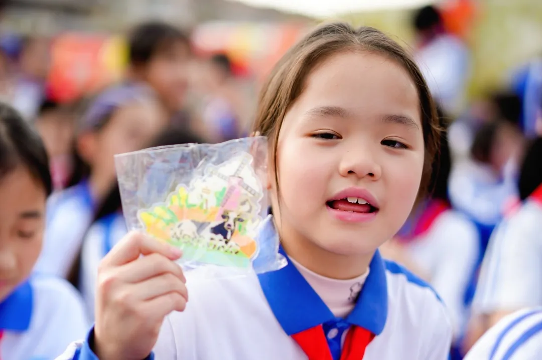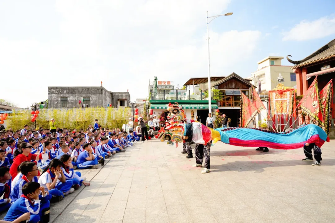 同学们围坐在一起,兴致勃勃地观看舞麒麟文化表演。威武灵动的麒麟在场上翻腾起舞,动作刚劲有力、热闹喜庆,既送上吉祥如意的美好祝福,也把中华优秀非遗文化的独特魅力展现得淋漓尽致。