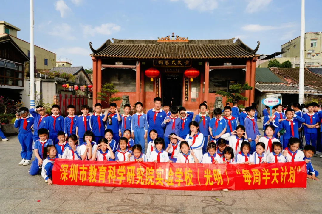 2026年3月16日,深圳市教育科学研究院实验学校(光明)精心开展“半日寻古韵,一迳品非遗”校外基地实践课程。本次课程立足于四年级学生的身心发展特点,该阶段的学生对世界抱有强烈的探索欲,具象化的活动与互动式的体验能有效激发其学习兴趣和热情。这场春日里的古村之旅中,学生能近距离感受非物质文化遗产的独特魅力,让知识在行走中自然生长。