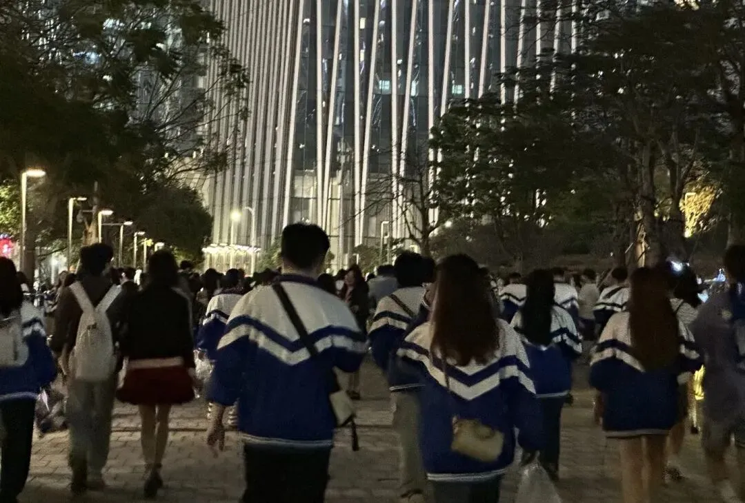 有人笑着跟唱,唱着唱着就红了眼眶。散场时,穿着蓝白校服的人群走出深圳湾体育中心,南山的路灯照着一张张带着笑意与泪痕的脸,结伴而行的身影,像极了二十年前下晚自习结伴回宿舍的我们,连深圳湾的晚风,都带着青春里独有的温柔。