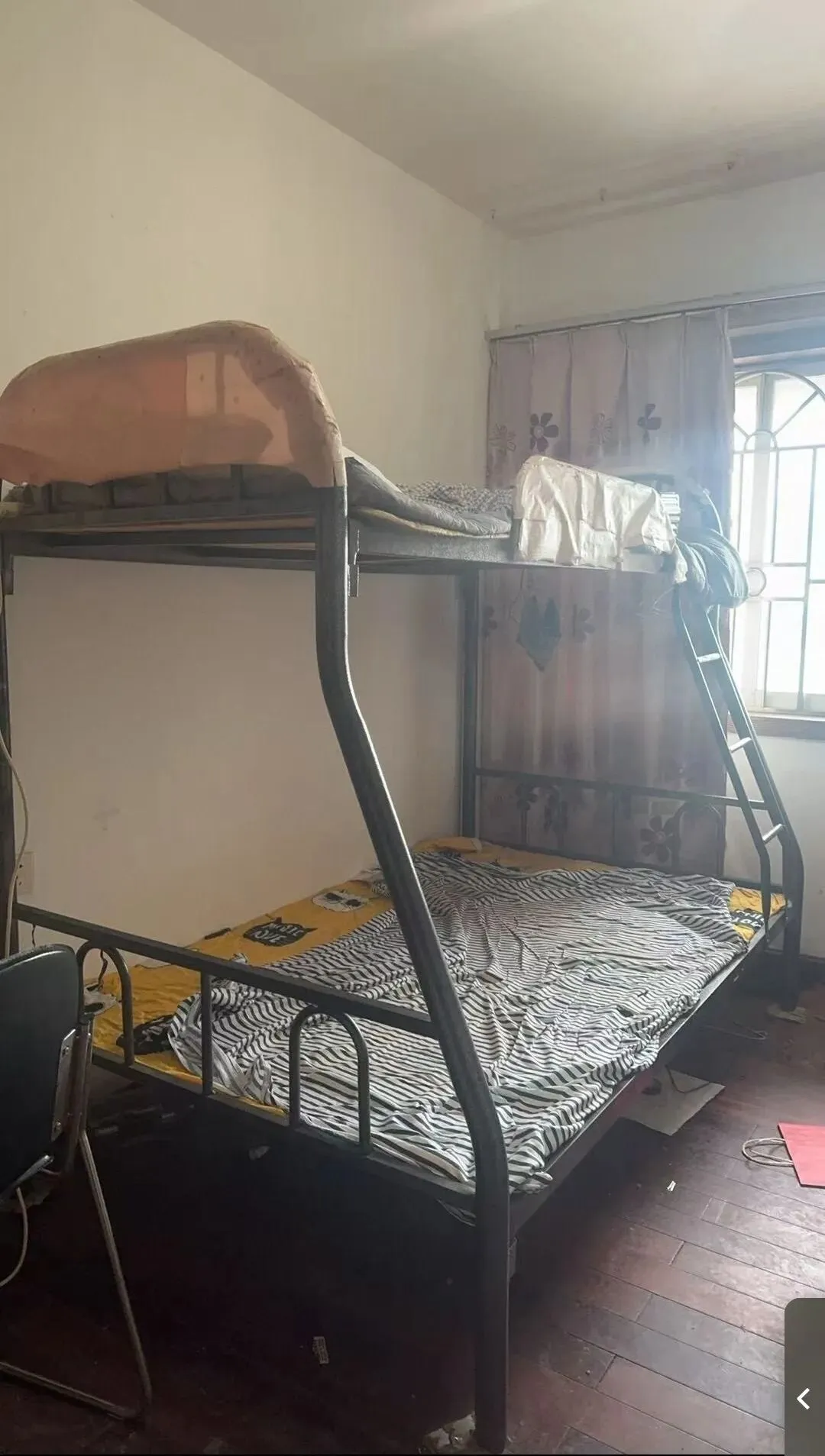处理闲置:铁架上下铺床 1.25米下铺 0.9米上铺 带护栏和梯子 结实耐用 承重没问题 睡人稳稳的 有3张,用过一段时间 成色还行 搬家闲置线下实体旧货店|高价回收·低价出售