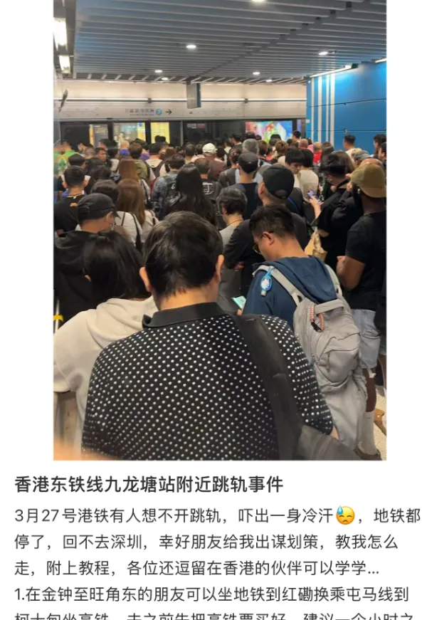 据深视新闻报道,3月27日,港铁东铁线有乘客进入路轨,东铁线旺角东来往大围站列车服务暂停。