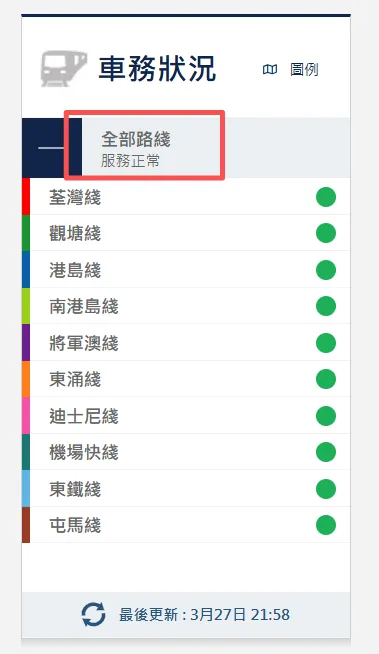 据香港地铁官方网站显示,截至发稿,目前香港地铁全部线路已恢复正常。