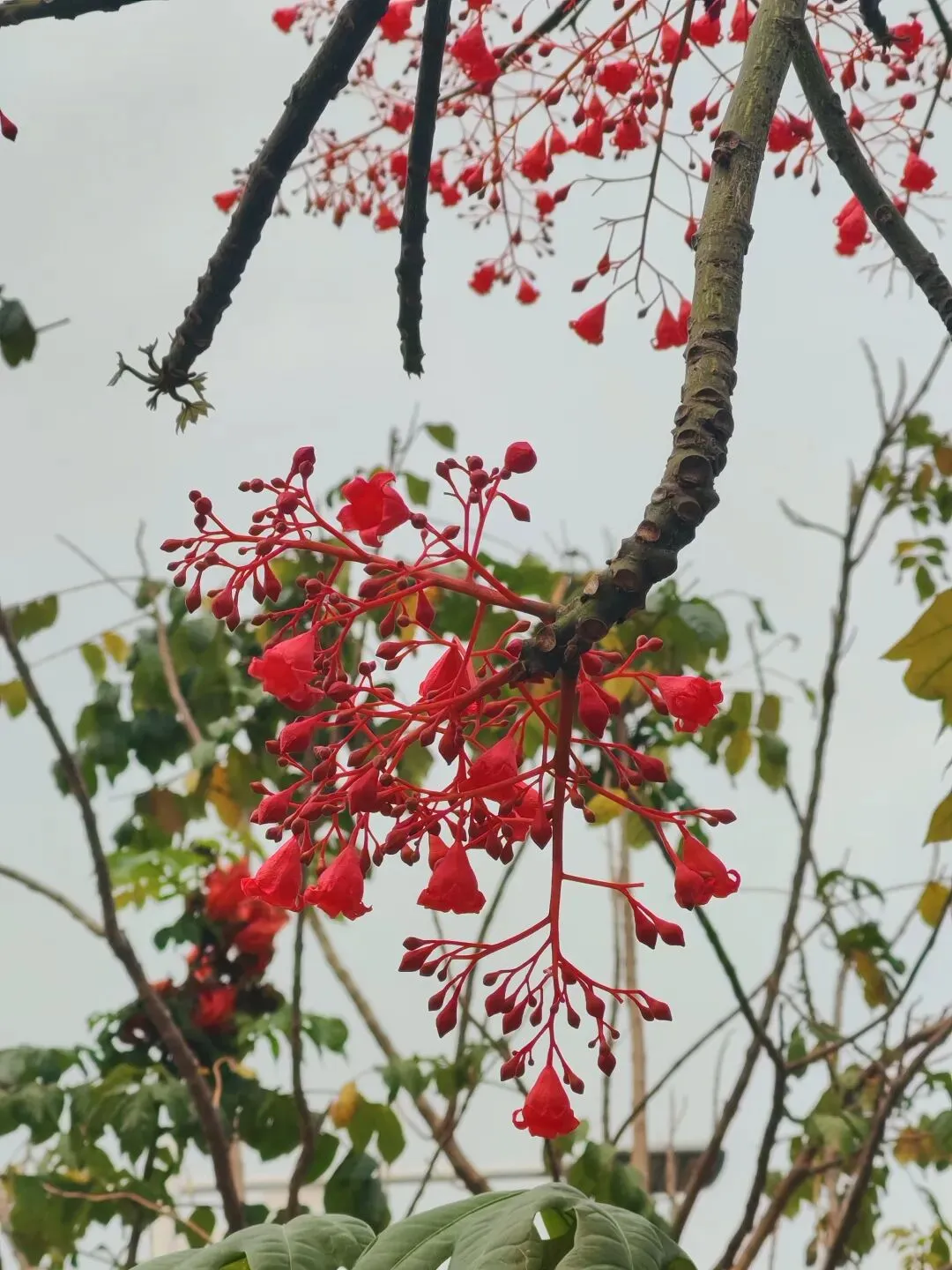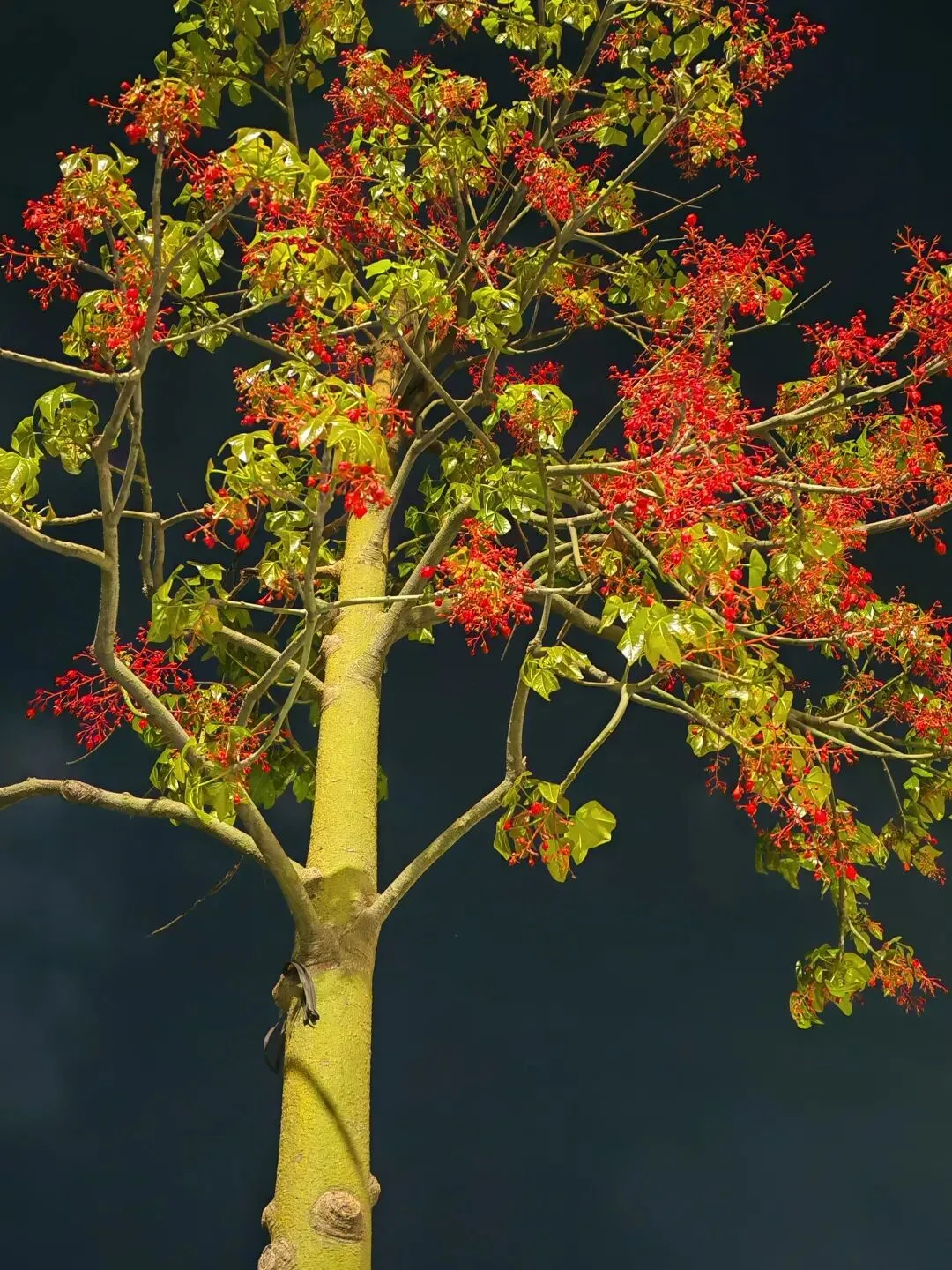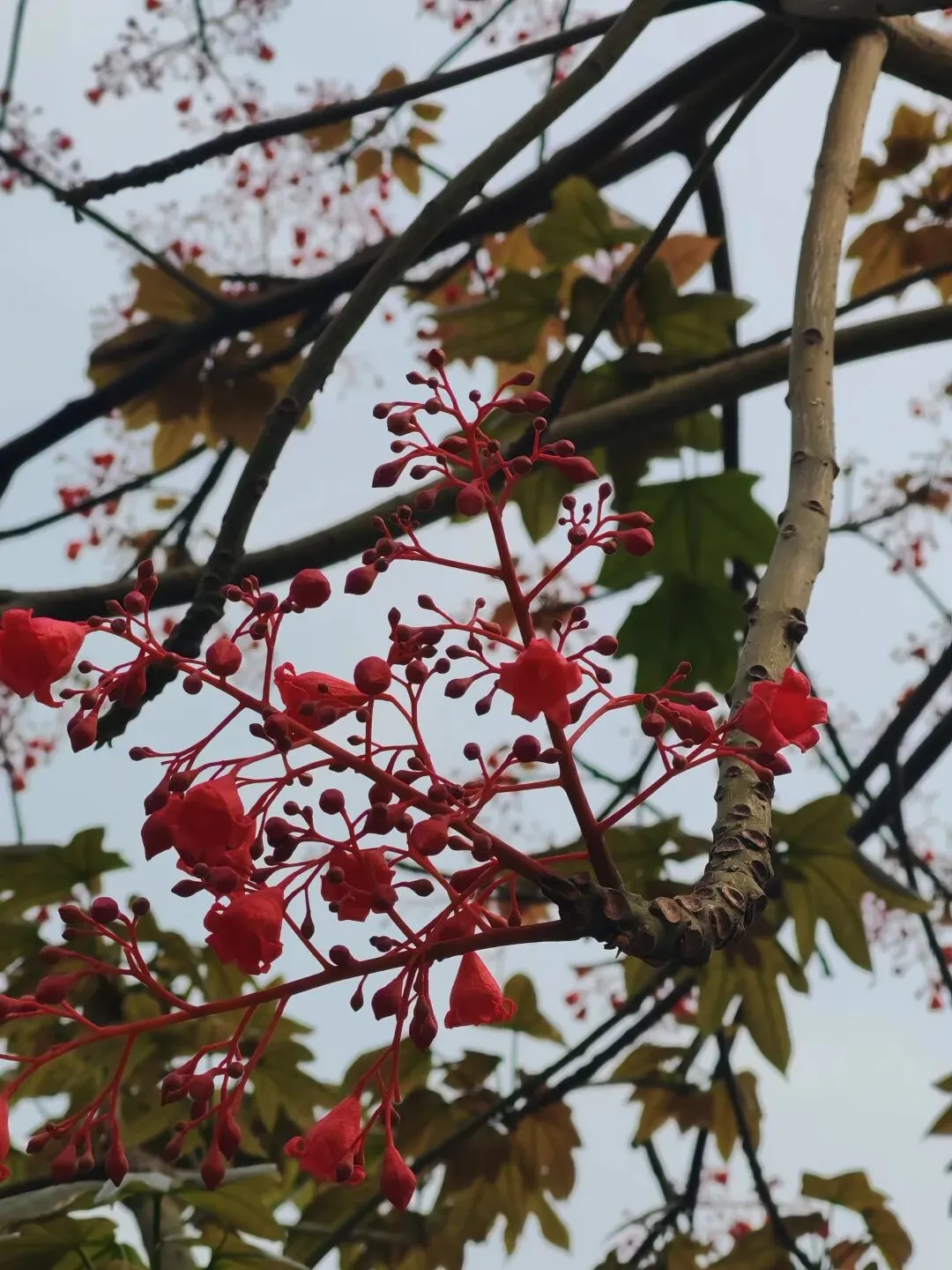 查过之后才知道,这便是澳洲火焰木,又名槭叶萍婆、火焰酒瓶树、槭叶瓶干。