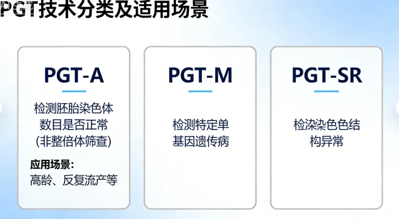 三代试管婴儿,医学上称为“胚胎植入前遗传学检测(PGT)”,是在常规试管婴儿基础上,在胚胎移植前对它的遗传物质进行检测,筛选出健康的胚胎进行移植。