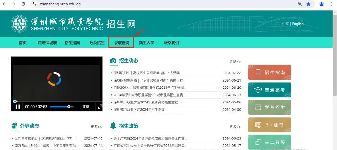 关注“深圳城市职业学院招生”公众号,底部菜单栏点击“报考指南”,选择“录取查询”,输入考生号和姓名,即可查询录取结果。