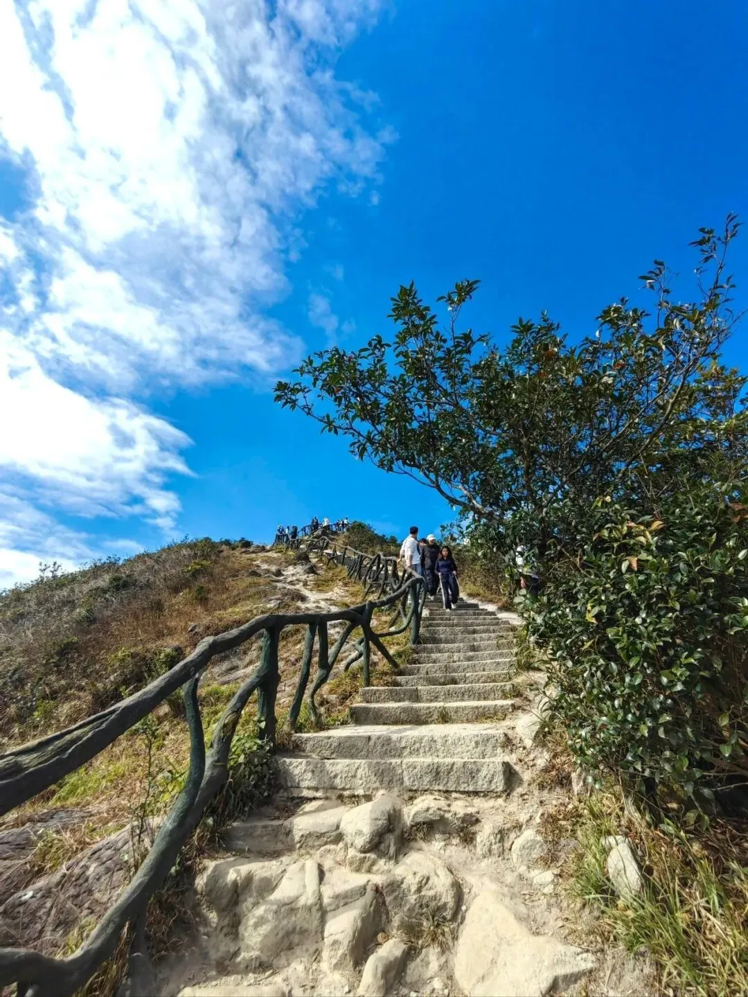 这条线的精华在山顶,晴天站在顶上能看到东西涌的海岸线,那段海岸是深圳最原始的一段,没有建设,没有开发,海的颜色是那种透彻的蓝绿,配上山顶的风,会让你短暂地忘记你在一座两千多万人口的城市边上。登山需要提前在"大鹏自然"小程序预约,周末名额会很快约满,建议提前一周锁好。