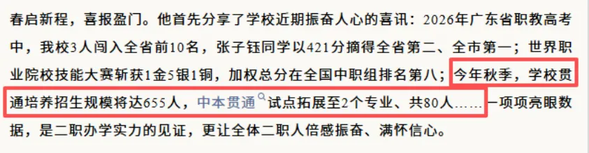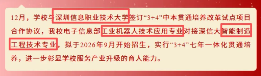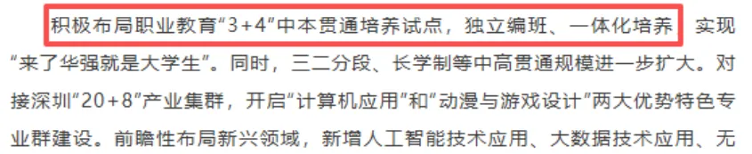 还有深圳市福田区华强职业技术学校(华强职校),也在官微上说要“积极做中本贯通的布局”,还会有新突破,大家可以多留意。