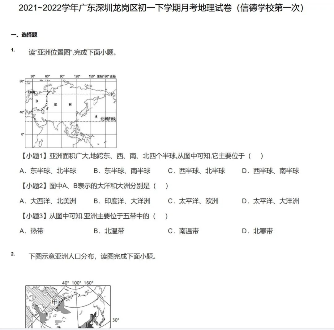 >2019-2020年深圳市各区初一下学期月考地理试卷及答案解析