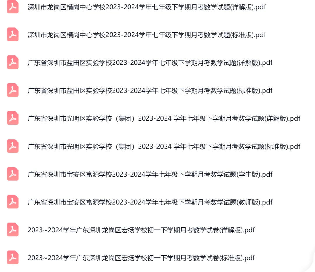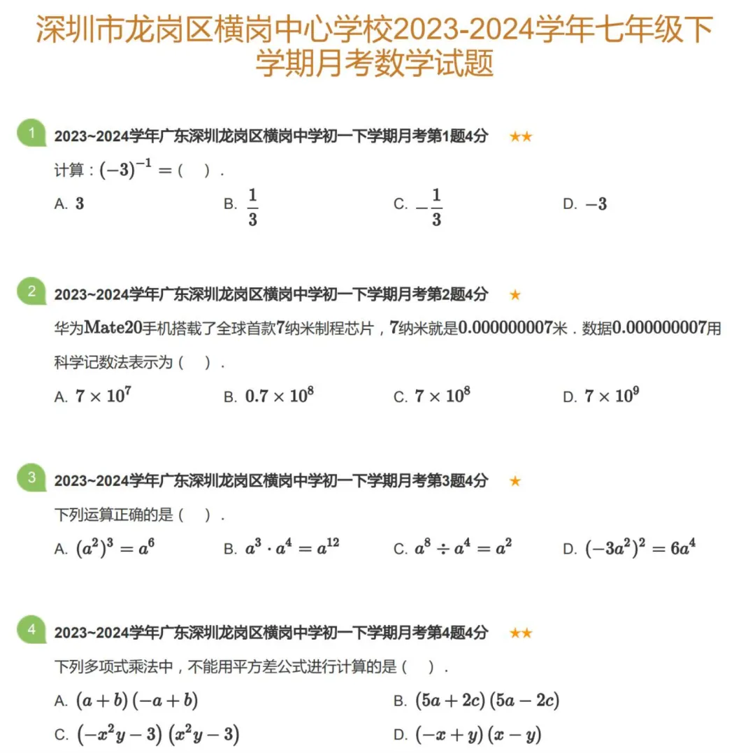 2016-2024年深圳市各区初一下学期月考数学试卷及答案解析