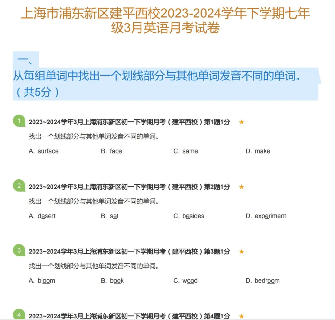 2018-2024年深圳市各区初一下学期月考英语试卷及答案解析