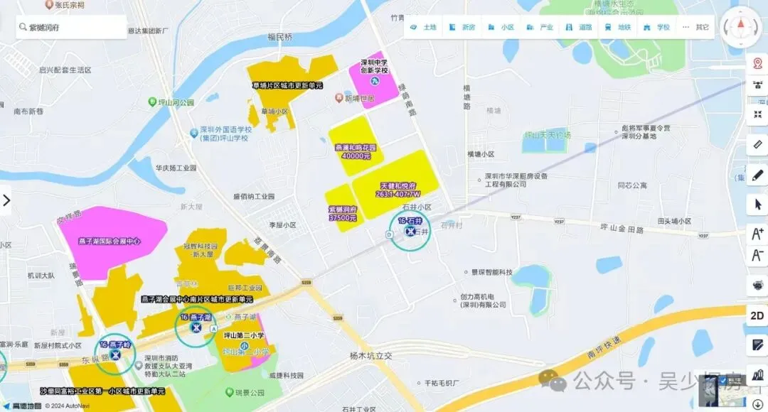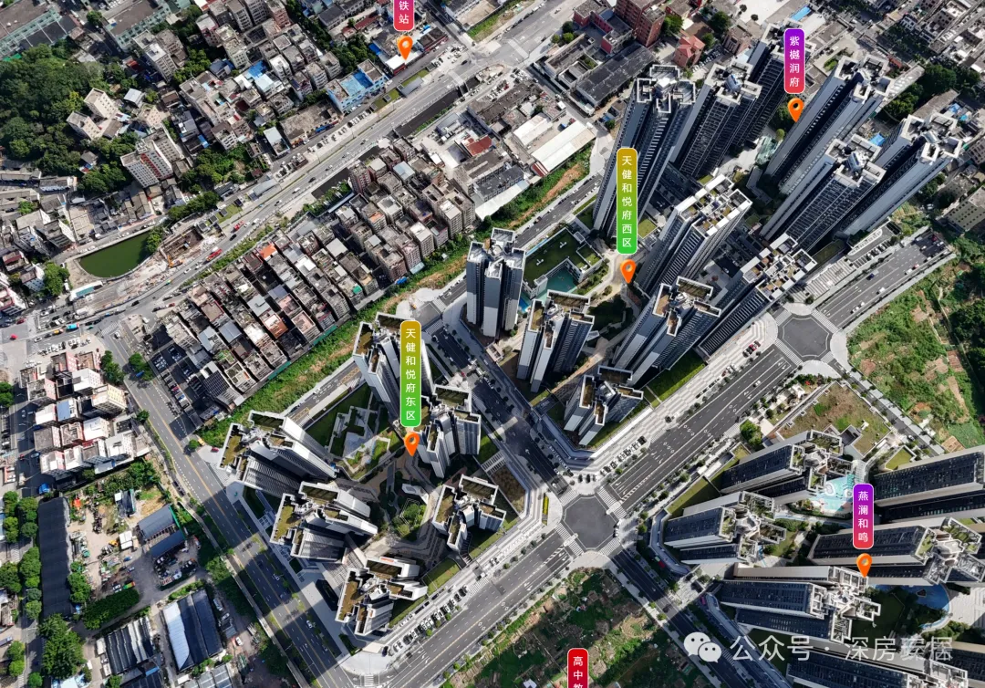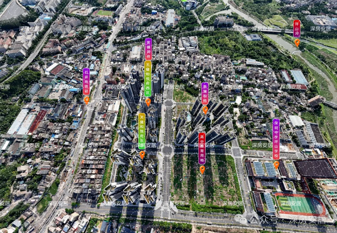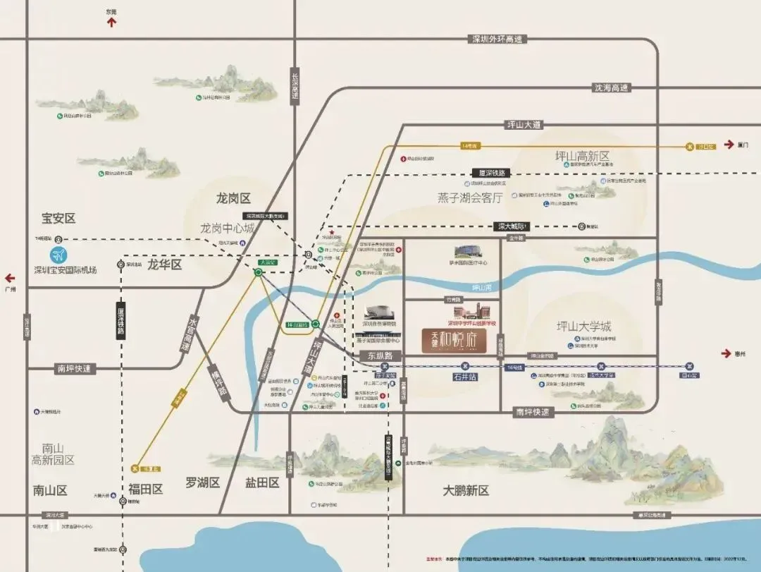 天健和悦府,位于坪山区石井街道金田路与绿荫南路交汇处西北侧,项目地处燕子湖片区,西北部为燕子岭公园,坪山河自西向东贯穿而过,区内汇聚了山、水、田、林、湖、草等多要素,得天独厚“看山、见田、拥河、揽湖”的生态优势是深圳市独一无二的生态资源,片区西侧的深圳坪山燕子湖国际会展中心,与深圳国际会展中心,深圳会展中心也是形成了一城三馆的格局