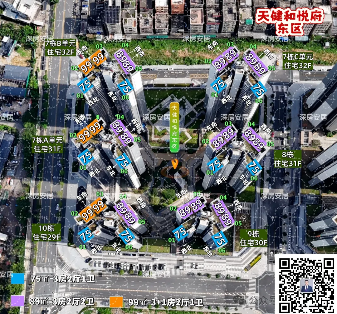 总占地面积约2.26万㎡,总建筑面积约14.43万㎡,计容建筑面积约10.37万㎡,容积率4.5,绿化率40%,共由6栋总高29-32层的住宅组成,其中7栋A单元住宅31F,7栋B/C单元住宅32F,8栋住宅31F,9栋住宅30F,10栋住宅29F,规划有公交首末站,社区菜市场。