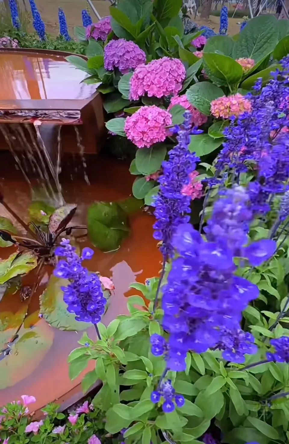 湖畔繁花簇拥,一汪湖水澄澈如镜,成了表演的天然舞台。