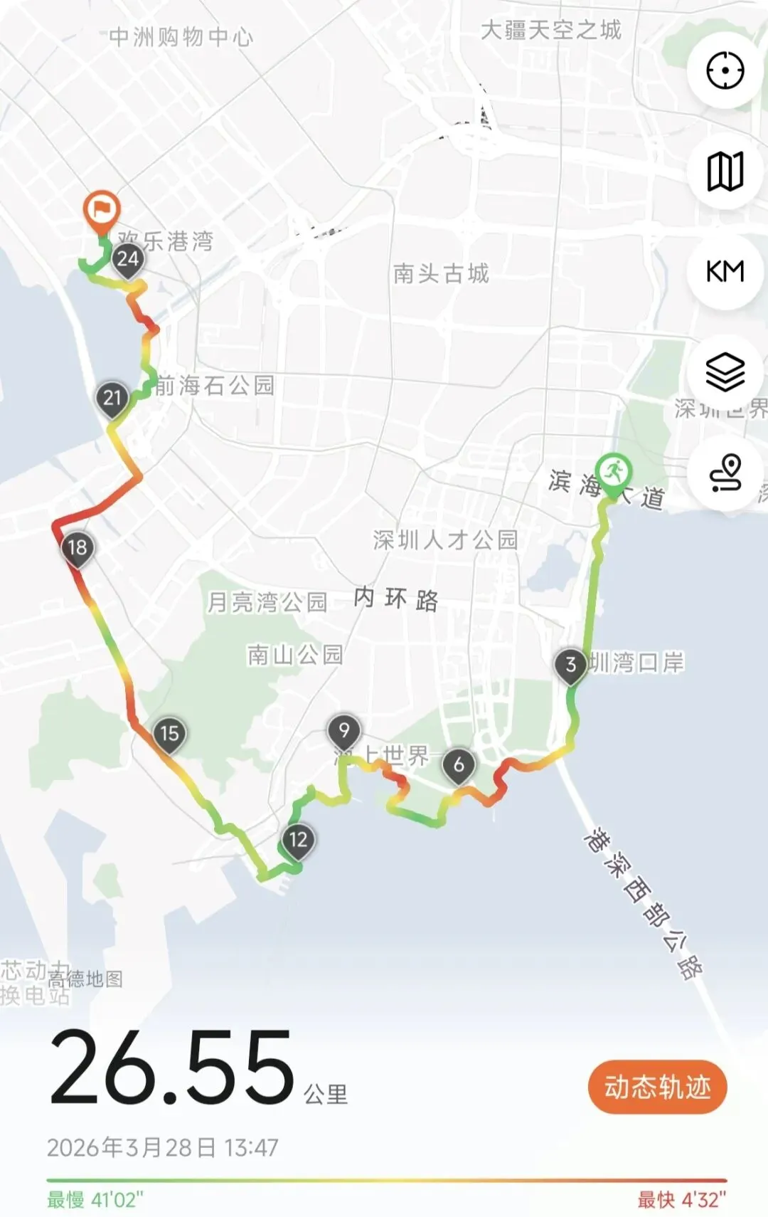 照例,周五晚上,让小儿子选方案——周六是他的专属户外日。两个选项:一是环西丽湖绿道,传说中的“山湖秘境”,绿道与碧道合一,全长约16.2公里,地铁可达,但小红书上说节假日不让骑共享单车,只能在附近租车;二是西部滨海骑行道,从宝安固戍码头到福田红树林,全长50公里,串起西湾红树林、前海湾、蛇口、深圳湾几个公园。他仔细在小红书看了两个地方的相关介绍,决定去山海连城。我怕五十公里有点远,最近腰不太舒服。他说西丽湖怕租不到车,也想把上次我们没骑通的那段路继续往前骑一骑。他又说,山海连城其实就是我们上次从大沙河骑到深圳湾入海口往右一直骑的那条路,只是上次蛇口段在修路,我们才转地铁回家了。