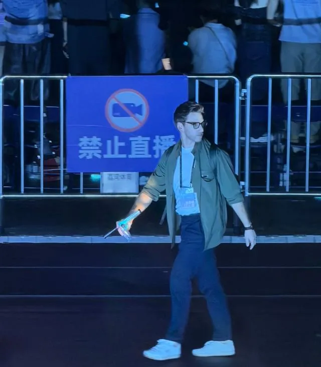 当晚,谢婷婷和男友一同现身。这位外籍男友一露面,就引起了不小的轰动。他一头耀眼的短金发,身穿休闲T恤搭配长袖衬衫,背着一个双肩包,身材挺拔。