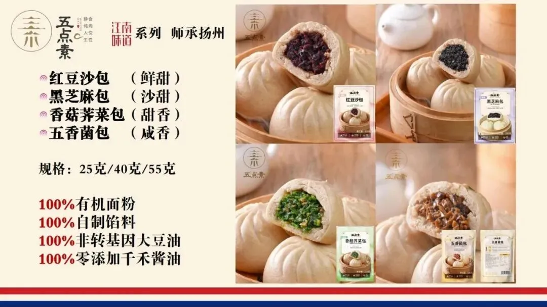 已发展成为国内知名的素食品牌,产品覆盖线上线下渠道,销往国内多地及海外市场,致力于推动素食文化的普及和健康饮食的推广。“五点素”的由来更多的是从传统养生和现代健康饮食出发的。过去老祖宗讲一年有五季(春、夏、仲夏、秋、冬),对应传统五行。给注重健康的现代人提供一点好的素食,实现素食养生。